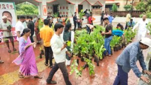 राष्ट्रवादी काँग्रेस जिल्हा अध्यक्ष अमित सामंत यांच्या वाढदिवसा निमित्त नवीन कुर्ली येथे झाडे वाटप