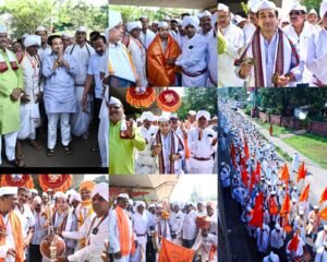विठूच्या नामाचा जयघोष…टाळ-मृदंगाचा गजर…हाती भगवा झेंडा…महिला वारकºयांचा डोक्यांवर तुळशी वृंदावन…विठ्ठल व संतांच्या नामजपात तल्लीन झाले वारकरी…असे चित्र कणकवलीत रविवारी पहायाला मिळाले. सिंधुदुर्ग जिल्हा वारकरी संप्रदाय, सिंधुदुर्गतर्फे संत ज्ञानेश्वर महाराजांचा ७५० वा जन्मोत्सव आणि संत तुकाराम महाराजांचा ३७५ वा वैकुंठगमन उत्सवानिमित्ताने भव्यदिव्य वारकरी दिंडी (पालखी सोहळा) कणकवलीत पार पडला. या पालखी सोहळ्याच्यानिमित्ताने सर्व वारकरी एस.टी. वर्कशॉप येथील गणेश मंदिरात रविवारी सकाळी जमले. त्यानंतर विठूच्या नामाचा जयघोष अन् टाळ-मृदुंगाच्या गजरावर मंदिराकडून वारकºयांनी प्रस्थान केले.