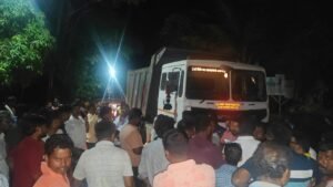 हळवल येथे खडी वाहतूक करणाऱ्या डंपर चालकाच्या बेजबाबदारपणामुळे संतप्त नागरिकांनी थेट डंपर अडवला. या मार्गावर ओवळीयेप्रमाणे दुर्घटना घडू देणार नाही, असा इशारा जमलेल्या नागरिकांनी प्रशासनाला दिला आहे. शिवडाव – कळसुली परिसरातील ए. पी. सावंत यांच्या क्रेशरवरून खडी वाहतूक सुरू होती. संबंधित डंपर कणकवलीच्या दिशेने येत असताना चालक मद्यधुंद अवस्थेत वाहन चालवत असल्याचे उघड झाले. हळवल येथील सार्वजनिक बांधकाम विभागाच्या कार्यालयादरम्यान रस्त्यावर चालकाने दोन तरुणांना अक्षरशः हुलकावणी दिली. ही घटना अत्यंत गंभीर ठरू शकली असती, अशी माहिती उपस्थितांनी दिली. मागून येणाऱ्या प्रवाशांनी चालकाच्या संशयास्पद वर्तनाची माहिती दिल्यानंतर नागरिकांनी तत्काळ डंपर थांबवून चालकाची चौकशी केली. त्यावेळी चालकाचा परवाना तपासला असता तो २०१२ सालापासूनच मुदतबाह्य असल्याचे समोर आले. त्यामुळे प्रशासनाच्या निष्काळजीपणावर नागरिकांनी तीव्र नाराजी व्यक्त केली.